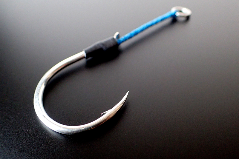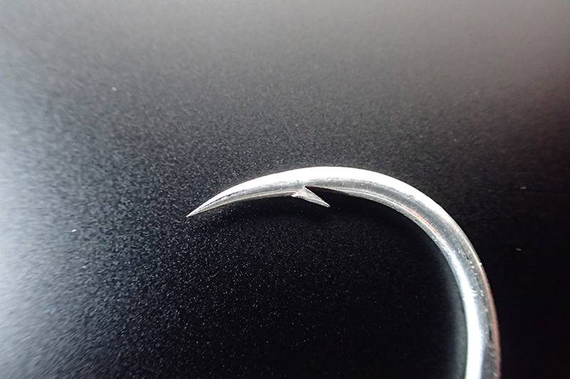 大型青物のヒットした瞬間から貫通するネムリ&ロングテーパーポイント。魚の口をフックのギャップでホールドする事でバラシ難くなっています。