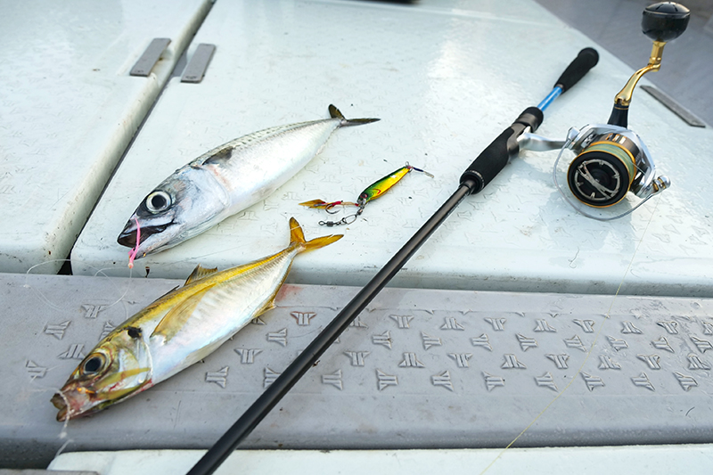 そんなサビキ仕掛けの優れた実釣性能を活かしてジギングに組み込んだスタイルが”ジグサビキ”。 読んで時のごとく、メタルジグにサビキ仕掛けをセットしたもので、ジグの前方に存在するサビキにより様々なターゲットが狙えるのが特徴です。当初は岸からのショアキャスティングで始まったゲームですが、現在ではオフショアジギングにおいても広がりをみせている注目のゲームと言えるでしょう。