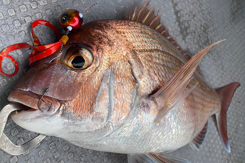 明石海峡では鯛のアベレージも小さくなり私は吸い込みの良い柔らかめのアシストに小針が基本になりますが、ポイントによってベストなセッティングは異なります。