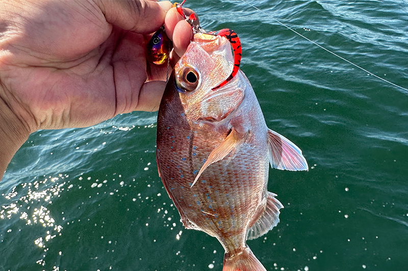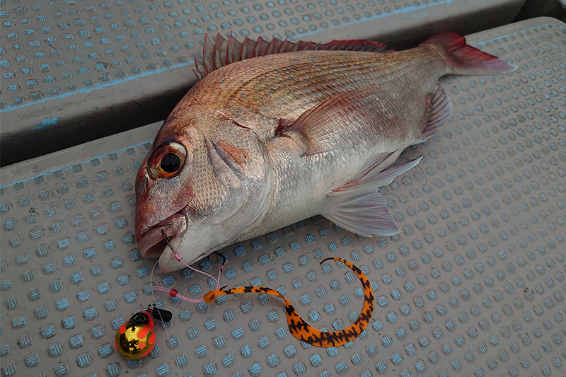 スピニングタックルで広範囲を探りながら釣れるラインを探り当て、真鯛のコンタクトを得た時の楽しさは格別です。