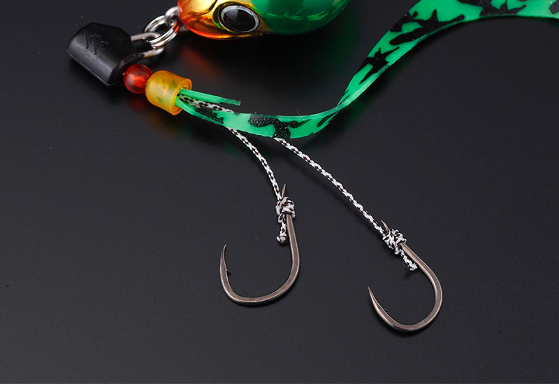 フックのセッティングも、ノーマルのタイラバではキャスト時の回転によるトラブルを少しでも防ごうと短くもなく長くもない微妙なセッテイングでパーツを作らなければならなかったのですが、スイッチではその必要もありません。