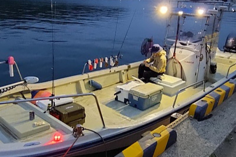 日が暮れ始める午後7時前に港を出航、約10分で水深20mほどのポイントへ到着。