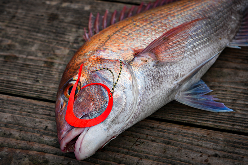ハリが曲がるのは、きちんとハリのフトコロまで貫通していないことが原因です。緩いドラグ値で挑むとアワセが決まらずバレやすくなるので、スプールを押さえてアワセを入れてしっかり貫通させることを意識するとよいかと思います。