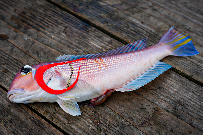 水深の半分を切ったところでハンドドラグを併用して浮かせたのですが、このような強引なファイトにも関わらず、ビンビンフック乱舞の#11は十分な強度を持つことを証明してくれました。