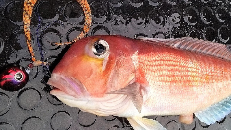 ボトムを取った後に二枚、三枚潮でテンションがかかっていない部分のラインを一回まっすぐになる様に10メートル程巻き取り、再度ボトムへジグを送り込みラインのテンションをしっかりかけた状態で丁寧にボトム中心での4分の1ピッチアクションをかけジグを浮き上がらせない様にして何とか渋いながらも魚をかけていく事ができました。
