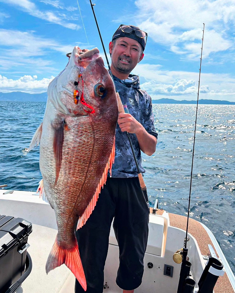 あまり得意としない長潮での平舘釣行となりましたが、船長のポイント選びや水深、潮流に合わせてビンビンスイッチやキャンディーのローテーションが功を奏し、デカ真鯛とはいきませんでしたが良型真鯛を筆頭に真鯛は10枚程、ゲストには青物やヒラメ、キジハタ等の素敵なファイトをしてくれる魚種も顔を見せてくれました!