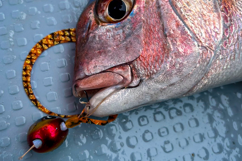 マスターカーリーオリジナルより、サイズ感が大きい為アピール力が増し、ネクタイの硬度も柔らかく作っているため、絶妙な波動で鯛に長く追いかけさせてヒットに持ち込みます。