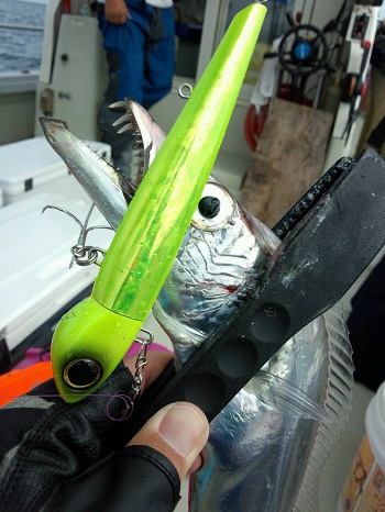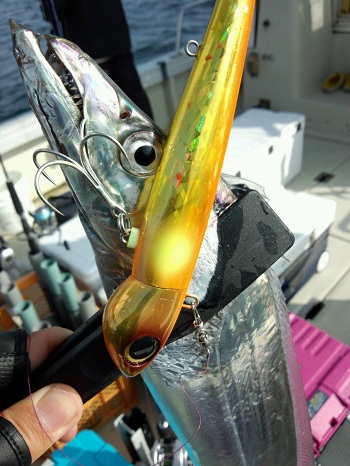 反応はボトムから2m~5mだったので、ボトムから10mまでを狙い、アクションは1m程鋭く跳ね上げ5秒ステイ。