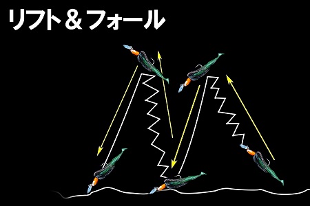 テンヤマゴチをする中で、リフト&フォールの動きの直後に、