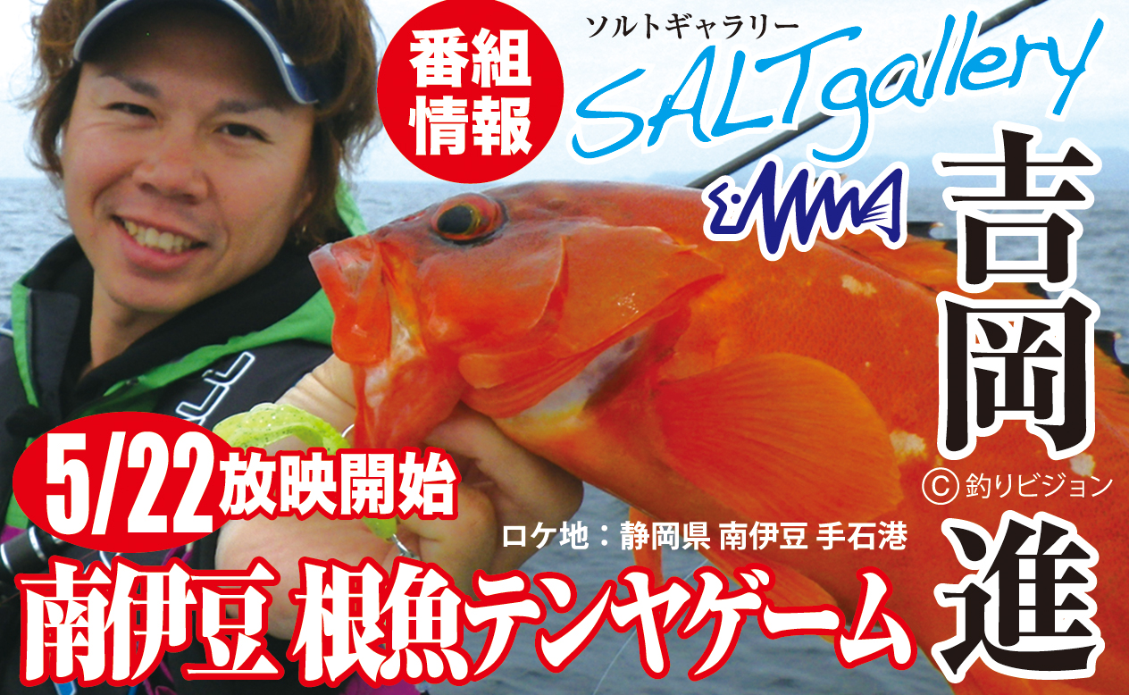 2016-05-09 WRITER:JACKALL 番組のご案内 吉岡進プロが出演する釣りビジョン、 ソルトギャラリーの番組表が公開になりました。 こちらのバナーよりご覧ください。 吉岡プロが得意とする”ひとつテンヤ”。 海老をつけ、真鯛を狙うのが一般的なスタイルですが、 今回は、 そんなひとつテンヤの新たな世界を紹介してくれる内容です。 ワームも使い、ベイトタックルも使い、 新製品 テキサステンヤ の魅力を余すことなくご紹介します。 さて、どんな魚が釣れるのでしょう。 皆さん是非、ご覧ください。 PREV LIST NEXT