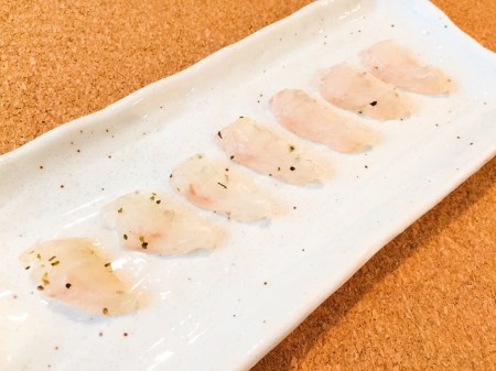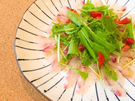 釣りから帰ってきて、道具を片付けて、それから捌いて…ってなるので、初日はほとんどカルパッチョになります(笑)