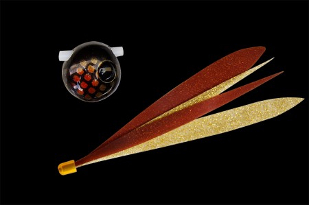 例えば、暗い色と明るい色やラメのギラギラな色と落ち着いたカラーを組み合わせて、2枚のネクタイの明滅によって実際の動き以上に派手に動いているように見せる効果が得られます。