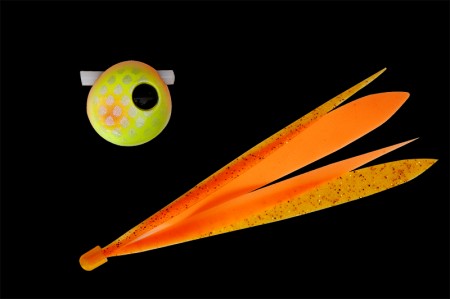 2色のネクタイを使うと一枚のときよりも複雑な動きをし、2色のコントラストによって明滅ができ真鯛に強くアピールしてくれます。