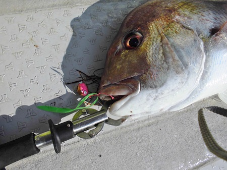 鯛が上下のアクションに反応するときは、たとえシャローでもバーチカルに狙うのが良いですね。
