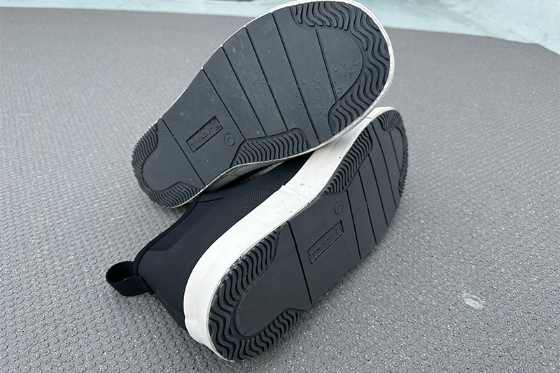 船のデッキの凹凸のないところや桟橋の木製部分や金属製の下り部分など、滑りやすい部分で試してみましたがかなり優秀なグリップ力を体感できました。