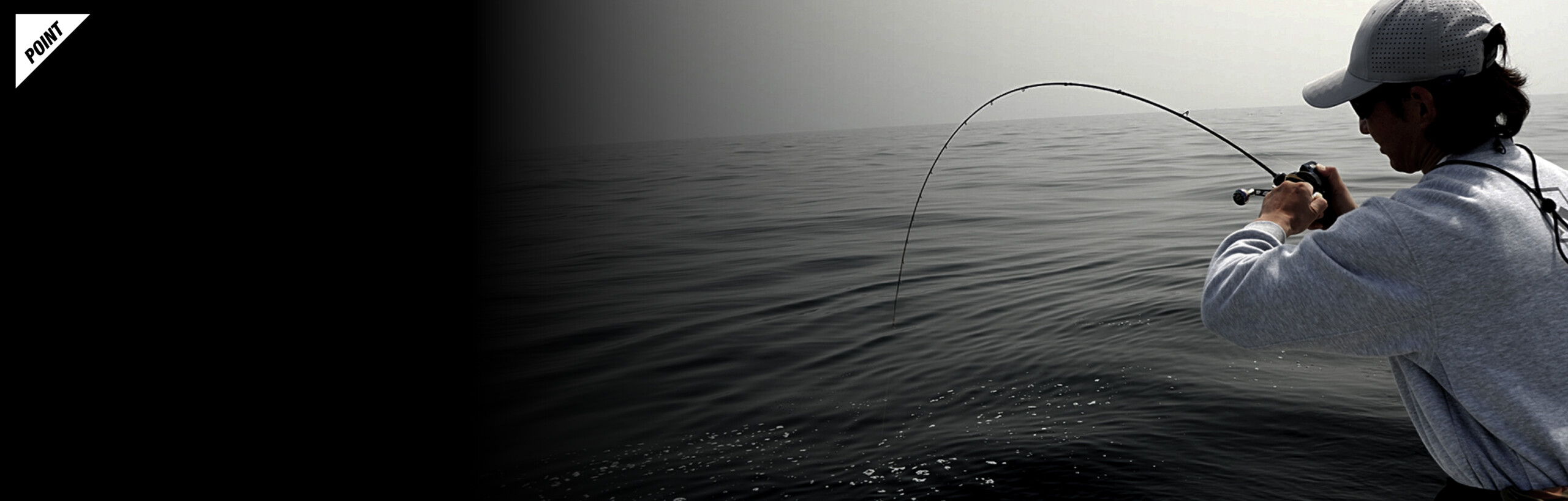 200gを越えるヘビー級ヘッド使用時においても、バット近くまで曲がり込むブランクが、アングラー側の手元に掛かる負担を大幅に軽減。掛けてからは、大鯛の強烈な首振りをも軽やかにいなしつつ、トルクフルなロッドパワーで主導権を与えず、数百メーター先から巻きあげてくる長時間のファイトでさえも楽にこなす事ができます。
