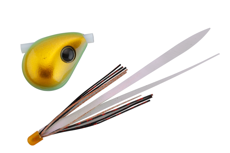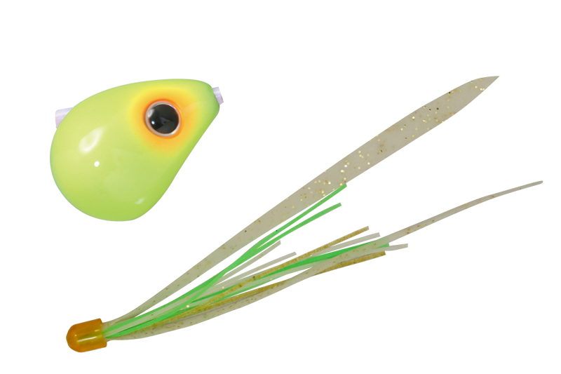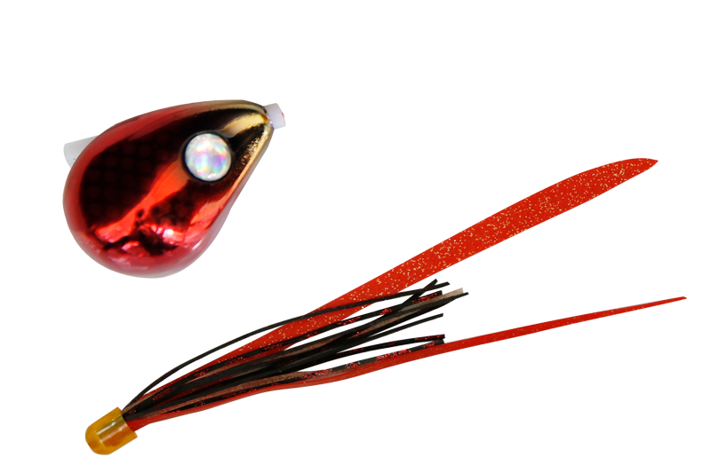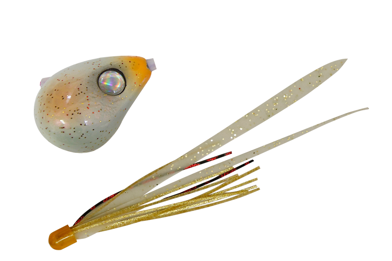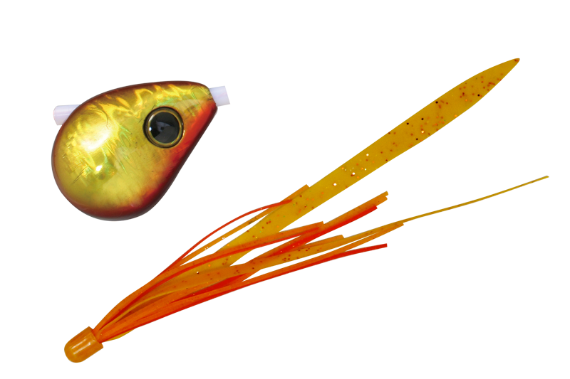 潮の流れの速いエリアを想定し、誕生した”爆流”鉛式ビンビン玉スライドが、海老パウダーと海老オイルを配合し味と匂いを加えた新素材「T+(tasteプラス)ラバー」ネクタイとスカートを身に纏いリニューアルしました。