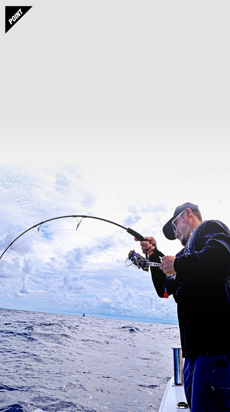 ブリやヒラマサなど青物とのファイトを想定したオリジナル設計のアシストフックを標準装備。各ウェイト別にベストバランスで強靭なフックがセットされていますのでパッケージをあけてそのままご使用いただけます。