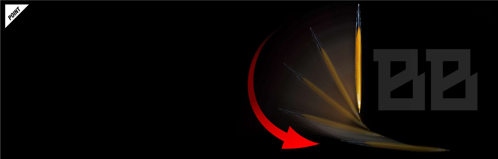 レンズホロのランダムな反射であらゆる角度からアピールしつつ、フォール時は肩のエッジ部にライン状に入ったグローとの明滅でアピールします。