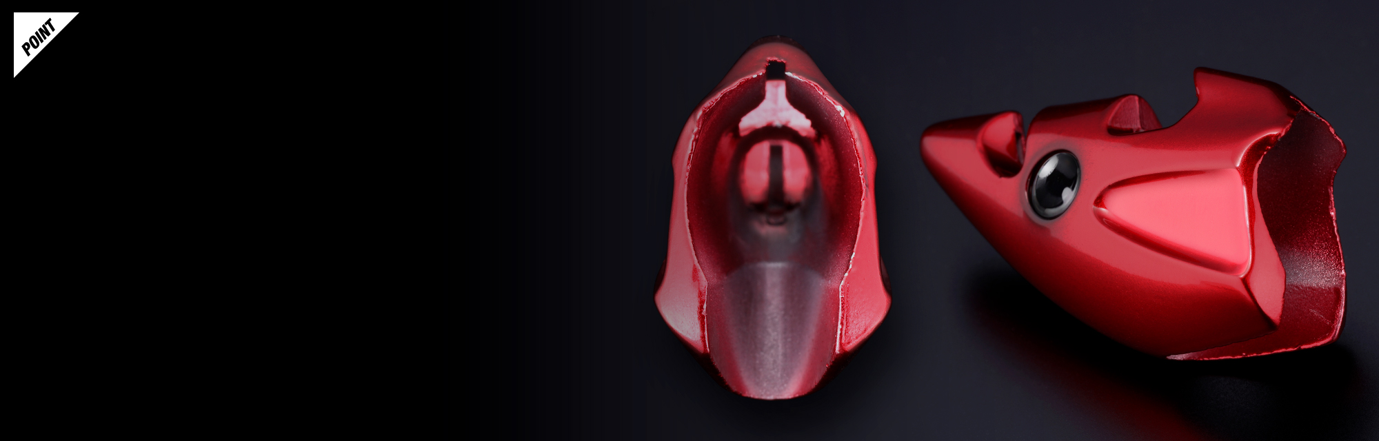 両サイドに設けたカップ状の切り欠きは、水の抵抗を抑え、アクション時の負担軽減に貢献します。
