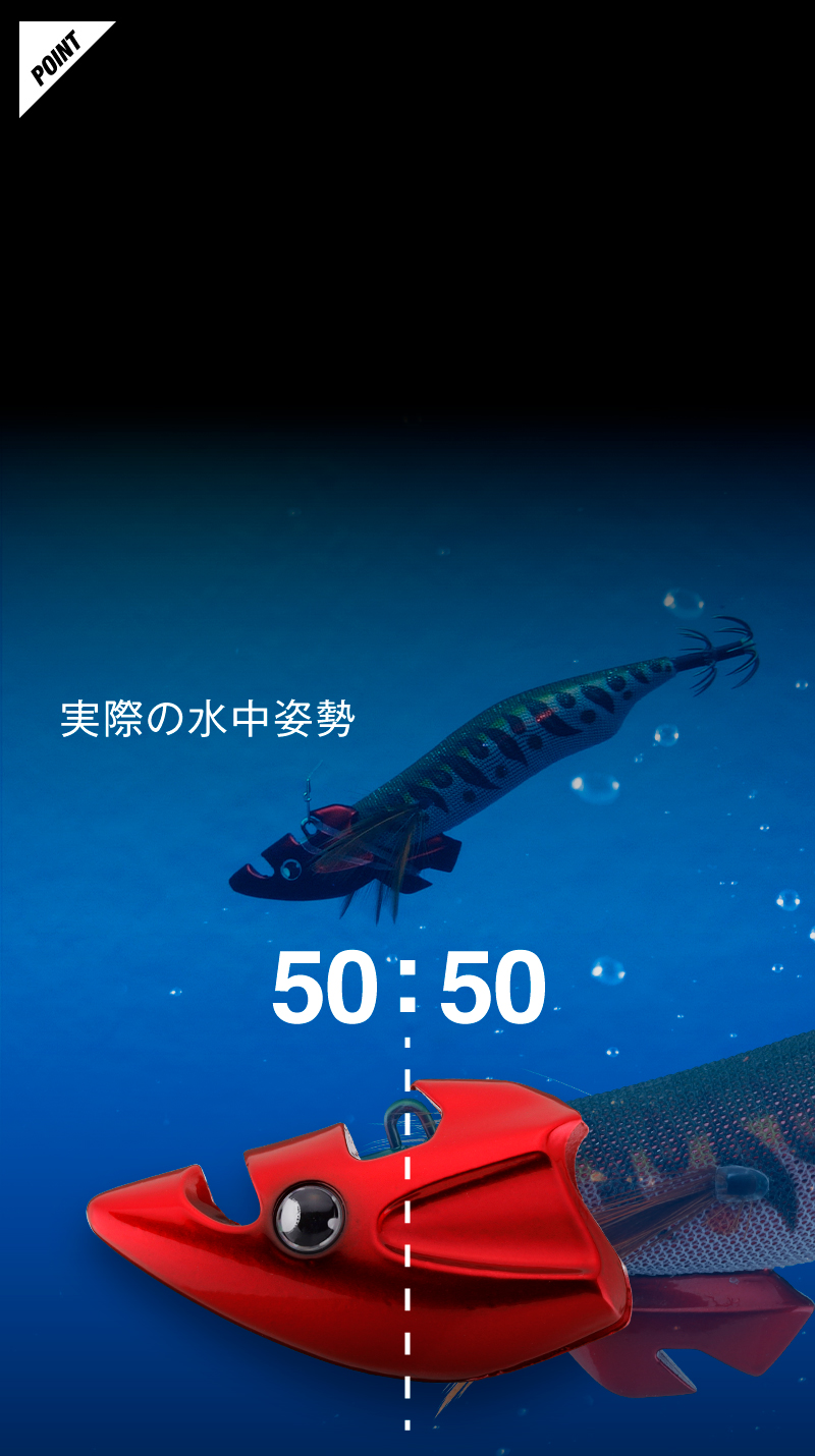 エギのアクション、姿勢を阻害しにくいバランスと、使用感に変化が起こりにくい水を切る形状で、より快適に違和感なく使いやすい後付シンカーです。