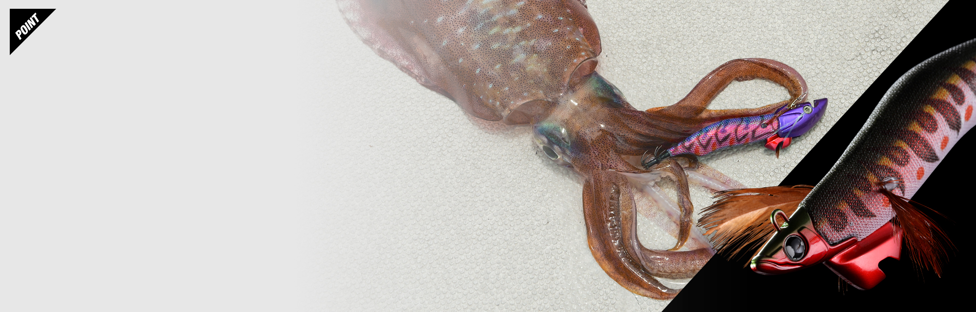 ❶:スパイラルフォールを制御することで素早いフォールとカンナへの糸絡みを最小限に抑え、アクション後のボディを“ビタッ”と止めるキールとして。