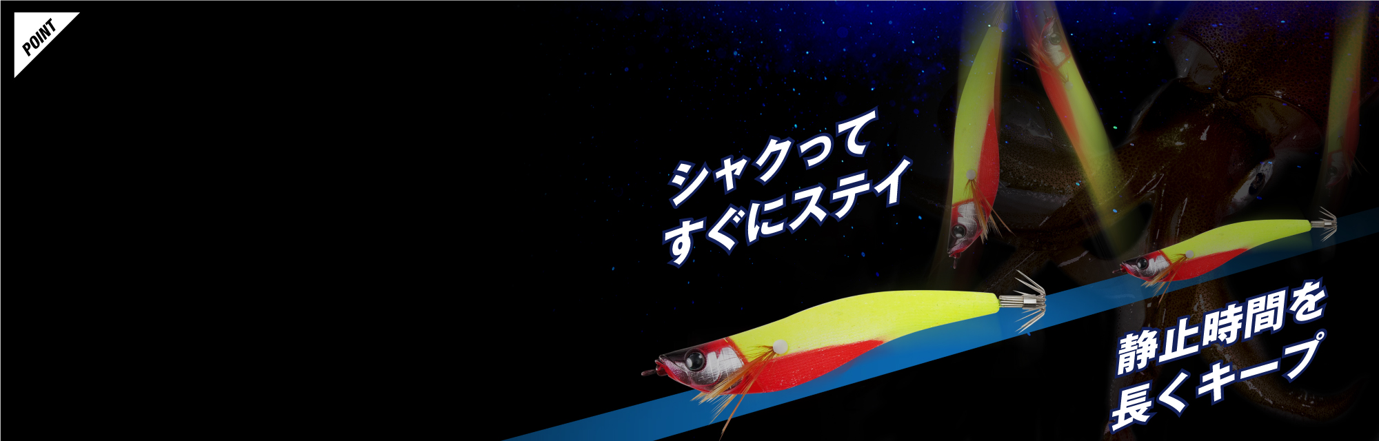 緻密なウエイト設定により、水中で静止(ステイ)時間を長く保つことでイカに十分な抱く間を与えることができます。
