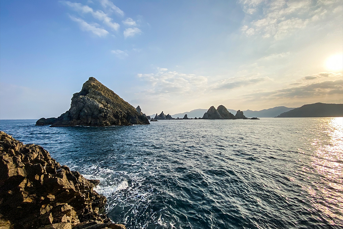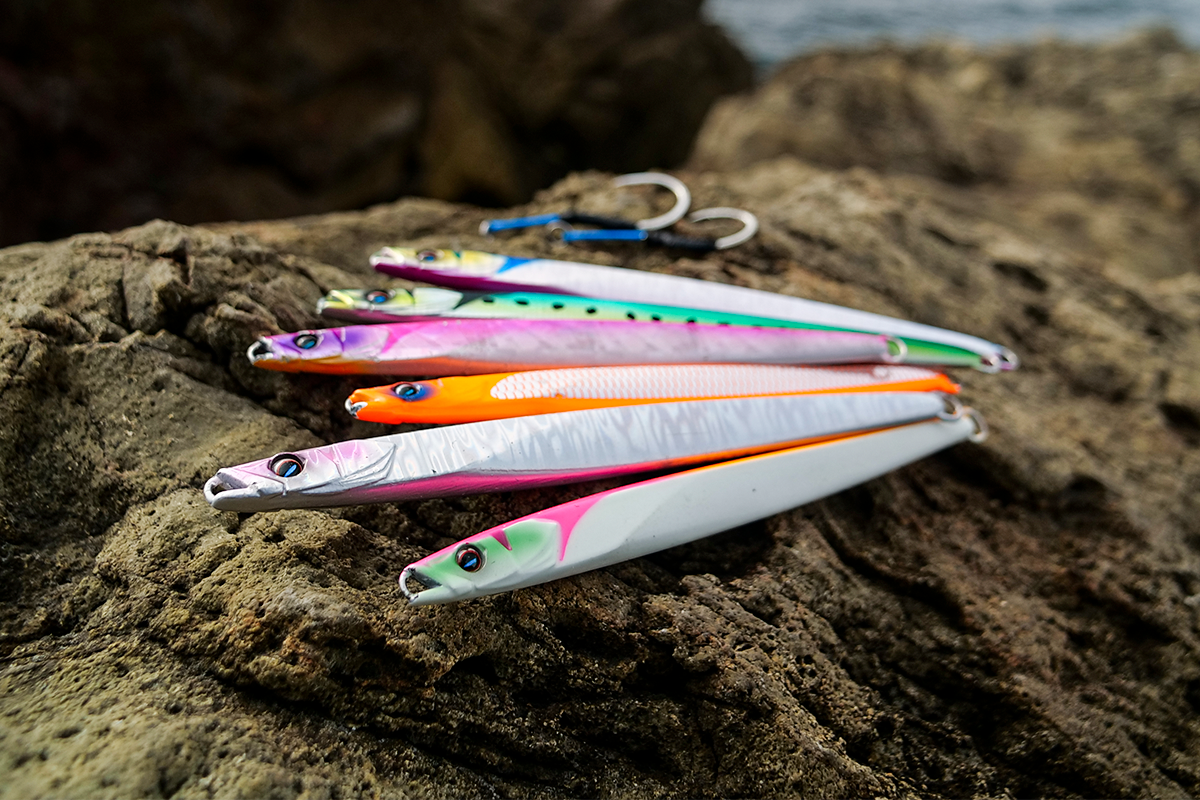 ジャッカルステーションの撮影で五島列島を訪れていたのですが、まだ3月上旬という事で水温も今ひとつ上がりきっておらず、春マサの走りといったタイミングでした。案の定、ロケが始まっても中々厳しい時間が続きます。しかし、お昼前の潮返しのタイミングに事件が起きました。突然沖から海鳥が飛んできたと思えば、その下で明らかに特大ヒラマサのボイルが!遠めでしたが、喰われているベイトはキビナゴのように見えました。この時、2023年の新作プラグのサーペンス160を投げていたのですが、届けば喰うのにボイル位置が遠くて届かない… という事で、CiAN 99XHに結んでいた『CiANジグデフォルト 85g』を遠投。