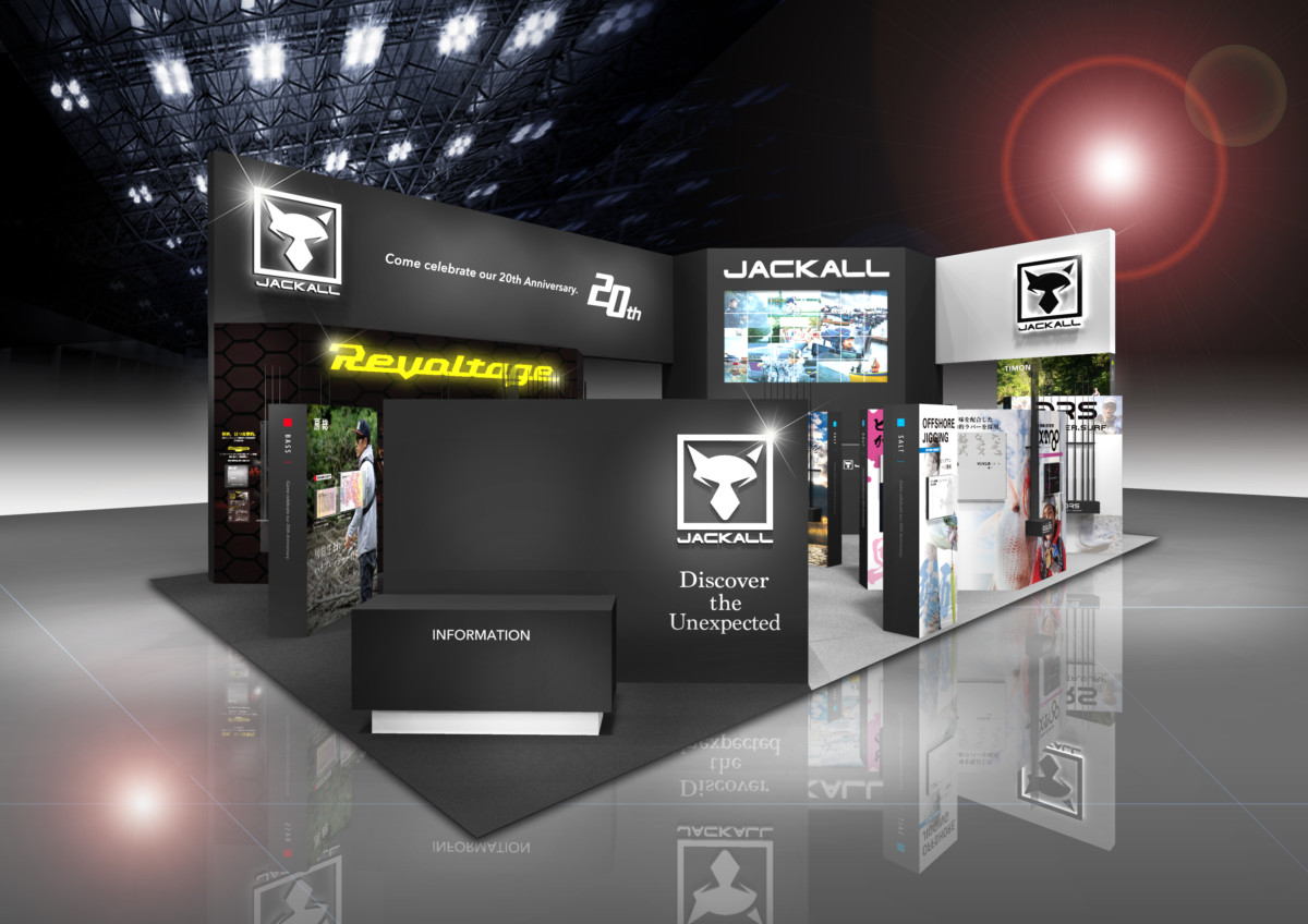 ジャッカルブースでは、2019年より始動するリボルテージをはじめとする新製品の展示、大型モニターを使ったステージ、ルアー型キーホルダーが作れるキッズコーナー、コンセプトブックの販売などを行います。