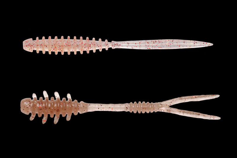 透明感のあるベースに赤フレークと初採用となるオレンジグロークラッシュを組み合わせた淡いアミ(小型甲殻類)をイメージしました。一見するとナチュラル系のカラーですが海中ではグロークラッシュの存在感でアピールします。