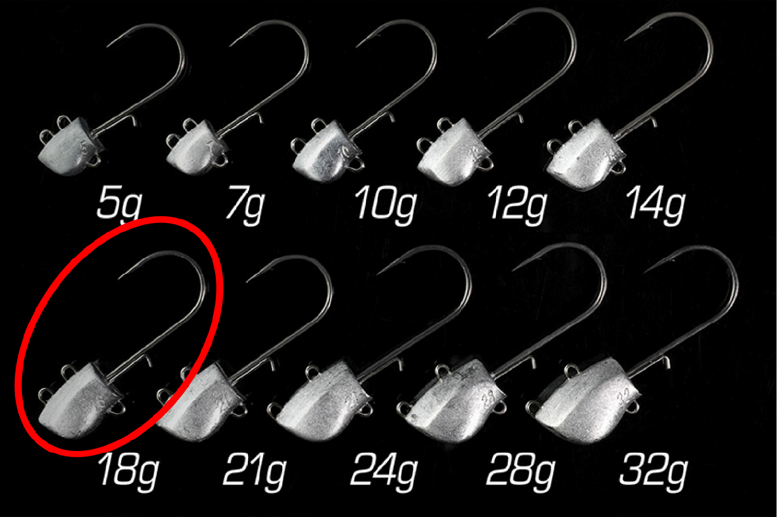 暗い時間帯は魚の視界も良く無いので、ルアーアピールが必要になってきます。また、中層をゆっくり引きたいのでジグヘッドのウェイトも軽くして操作します。