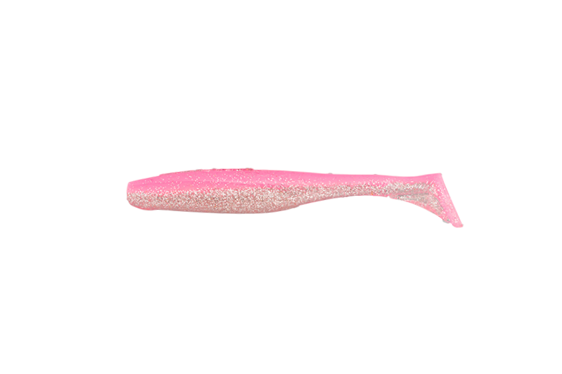 ルアーは「センシーシャッド/ピンクシルバー」&「センシージグヘッド/18g」の組み合わせ。