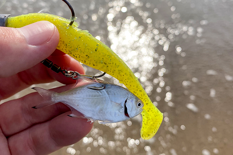 沖にいる魚に対してプレッシャーを与えることなく繊細に誘うことができるので、フレッシュな魚が勢い良くバイトしてきます。