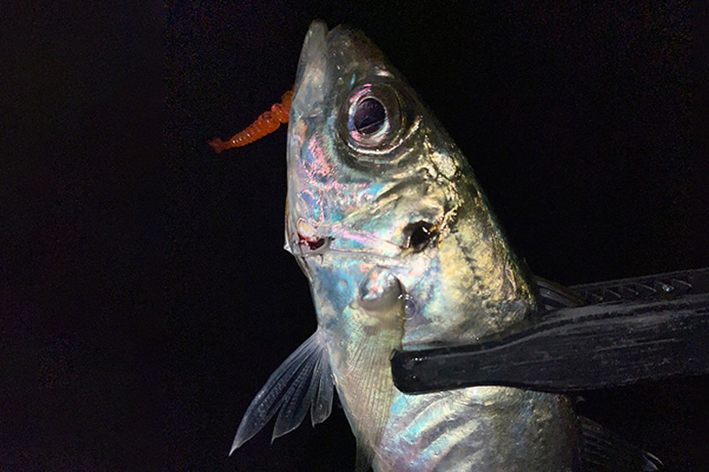 そして潮が流れ始めるとタイドMAXや微波動系のストレートワームで的確に流れの中でレンジを刻み、その日のアジが好むワーム形状での出し入れで攻略。