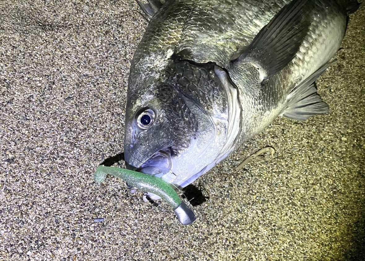 また、着底後すぐにバイトがあったので70m先でフッキング動作に入りましたが、ラインもヨレている中でしっかりとフッキング出来た「SB-109MMH」は凄く頼りになるロッドです。