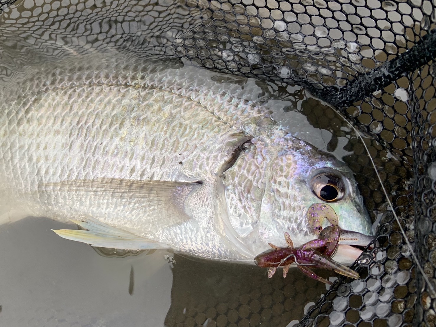 この時期のチヌは、ストラクチャー着く場合が多いので、ピンポイントを丁寧に誘うとバイトしてきます。