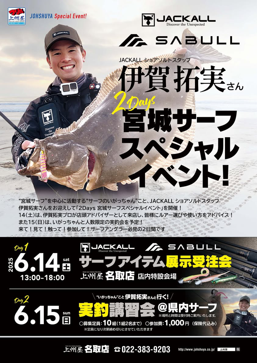 6月14日、15日の2days、”上州屋名取店”×”ジャッカル”コラボイベントが開催されます。
