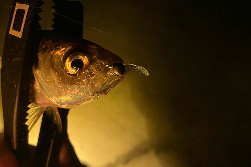 その後も表層から中層にかけてカウントをしながら探っていくと再びヒット!少しサイズが上がり小アジが釣れました。