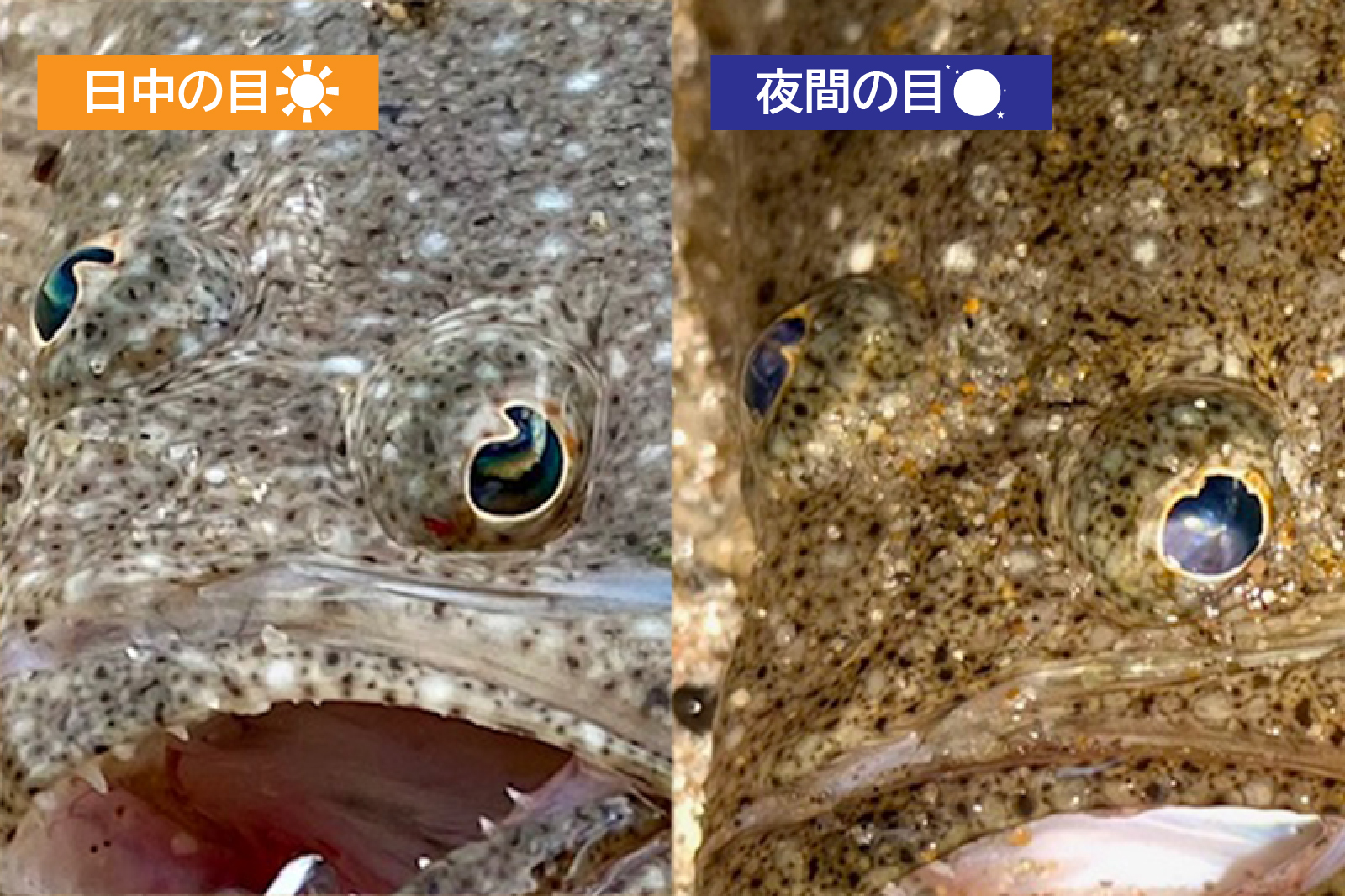 日中と夜間のヒラメの目に注目