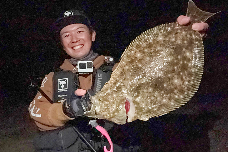 ようやく1枚目を釣ることが出来ました!今の季節ならではの肉厚なヒラメ!