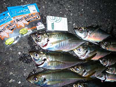 2013-03-08アジ WRITER:STAFF キビキビナ~ゴで爆釣アジング!! 静岡県の杉山様です。アジ調査に行ってきました。 最近の静岡はアジングが絶好調です。 先日は一か所のポイントで 最初から最後まで30~35㎝ほどの体高のある良型アジが連発!! 写真はそこそこ釣った方の写真を撮らせてもらいました。 私はクーラーを持っていなかったため、皆に配る役目でしたが 30~35㎝のアジを30本近く釣りましたよ! もちろん、 キビキビナ~ゴでの釣果です。 PREV LIST NEXT