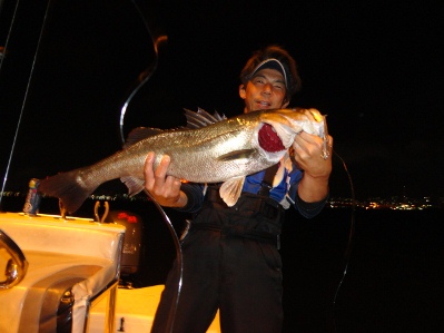 深いレンジでまだバチ&イカを捕食しているシーバスを『ビッグバッカー107』のボトムからの巻上げで狙っています !
