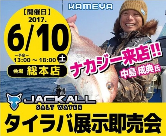 6/10(土)PM13:00よりかめや総本店様にて中島成典プロによるタイラバイベントが開催されます。