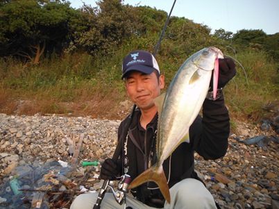 ショアジギ定番カラーといえば、今回も釣果を出してくれた『ピンクバック』が定番。