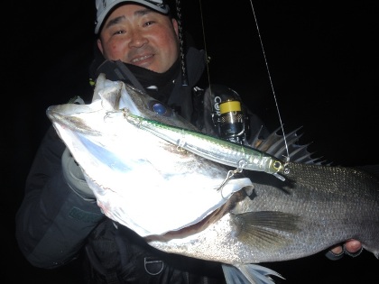 写真は数日前に東京湾河川にて、バチ抜けパターンで使用したスレンに飛びついたナイスサイズのシーバスです!