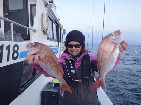 真鯛15枚に花鯛5枚。これでもやや厳し目の日だったとか…(笑)