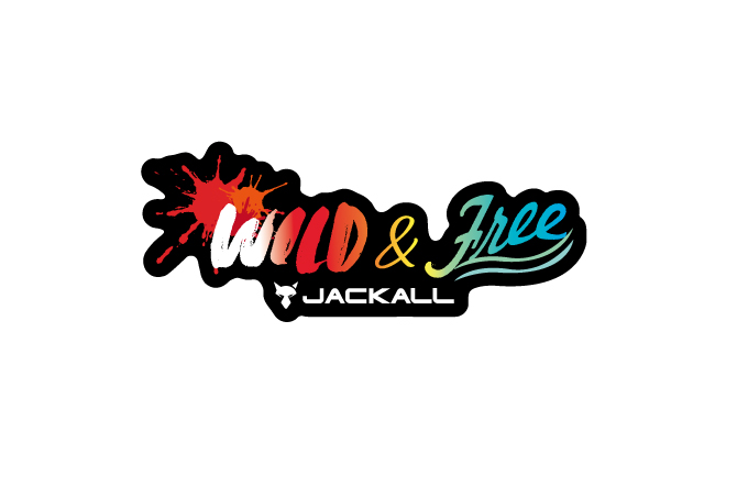 屋外対応のステッカー。今年のジャッカルのテーマ「wild&free」をモチーフに。タックルボックスやスマホに貼って楽しんでください。