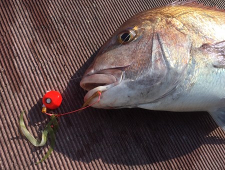 当初、なかなか動かない潮に苦戦しましたが、潮が動いてからはニューアイテムのビンビン玉156g(イチコロ)も炸裂して大鯛が連発!