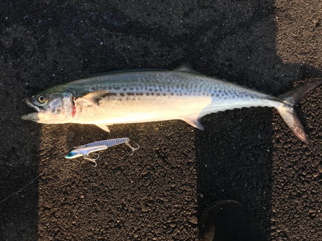 この日は小カマスでしたが、日によってアジだったり、サヨリだったりします。状況に応じたルアーをチョイスすればいいと思います。