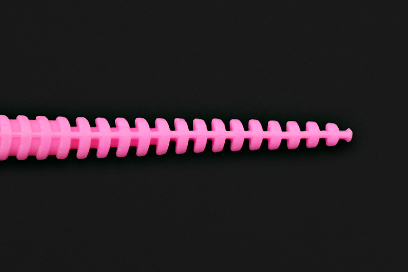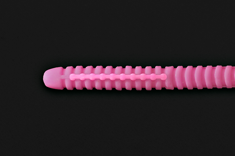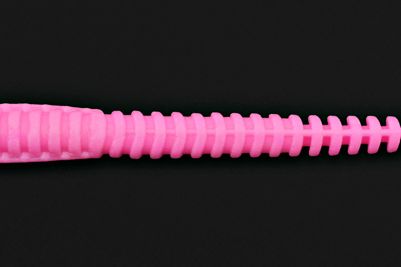 前部と後部の中間のリブの深さに設定した中央部は、艶めかしいアクションを阻害しない絶妙な柔らかさを持ちながらも適度に張りがあり、フックがテールを拾ってしまうトラブルを軽減します。